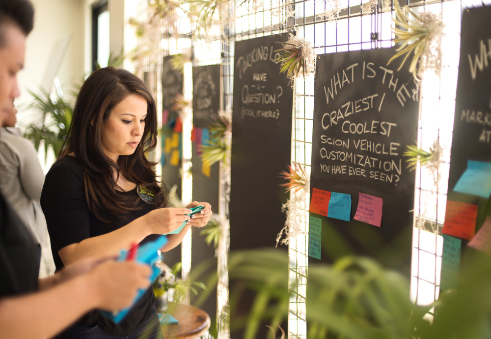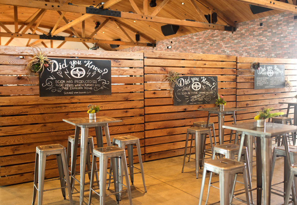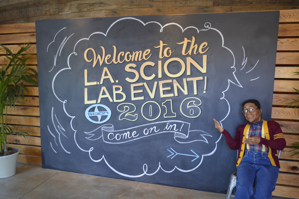 Bookt Events. Toyota Scion is a reputable worldwide car company. Belinda's vision was to integrate larger than life chalkboard art throughout the venue including the parking lot. She believed chalk art would liven the atmosphere visually and speak to a broad crowd of creative young professionals. This event focused on today's market.